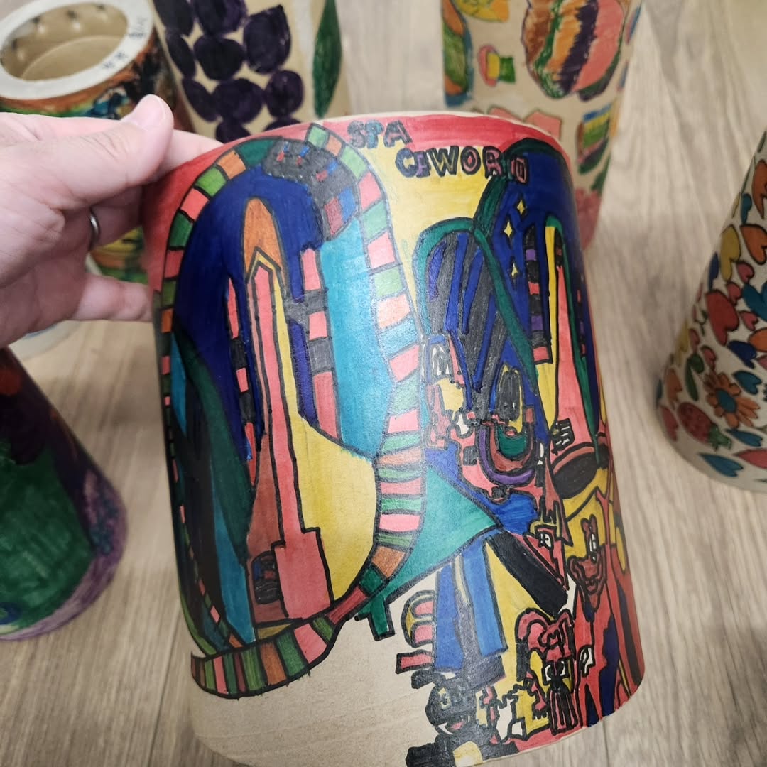今回は、九州製紙さまご提供の紙管に、障がいを持つ方々がアートを描きました🎨