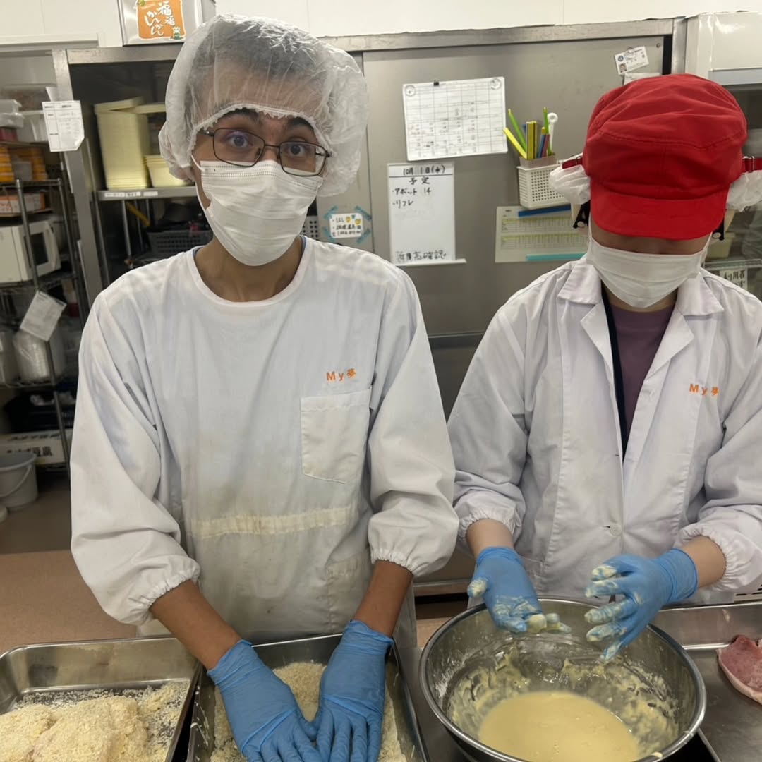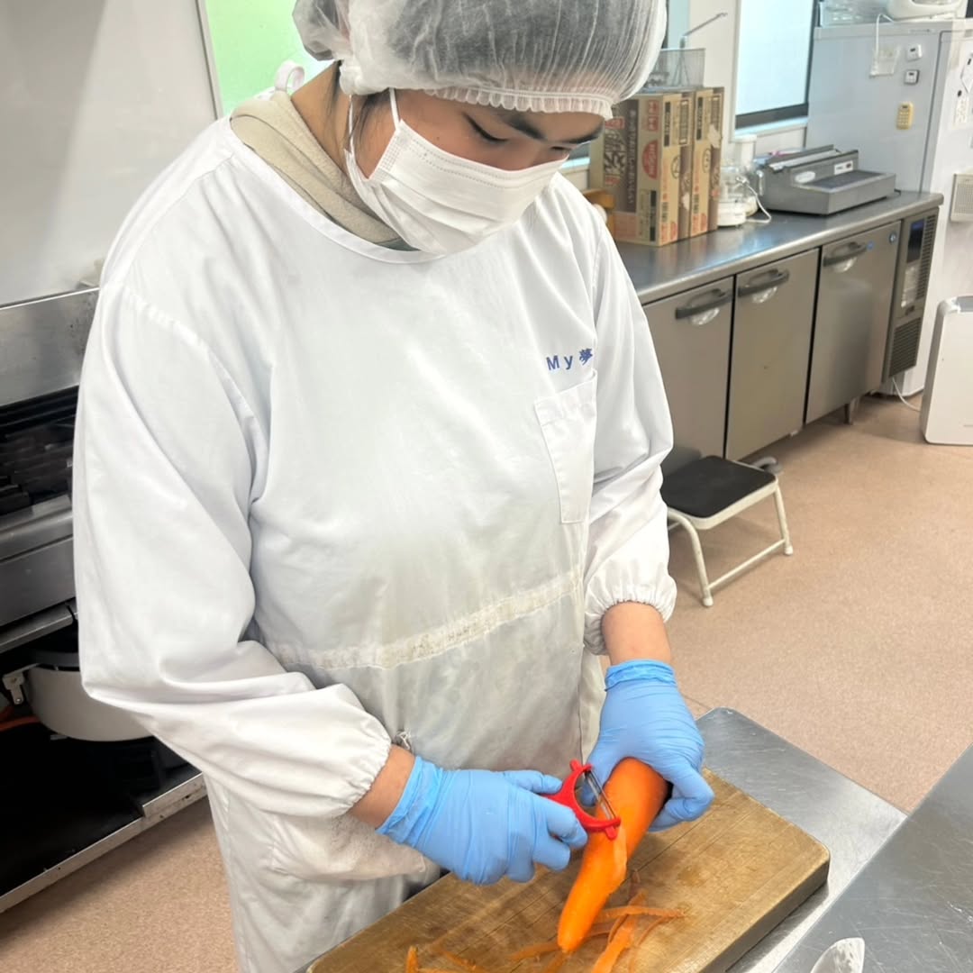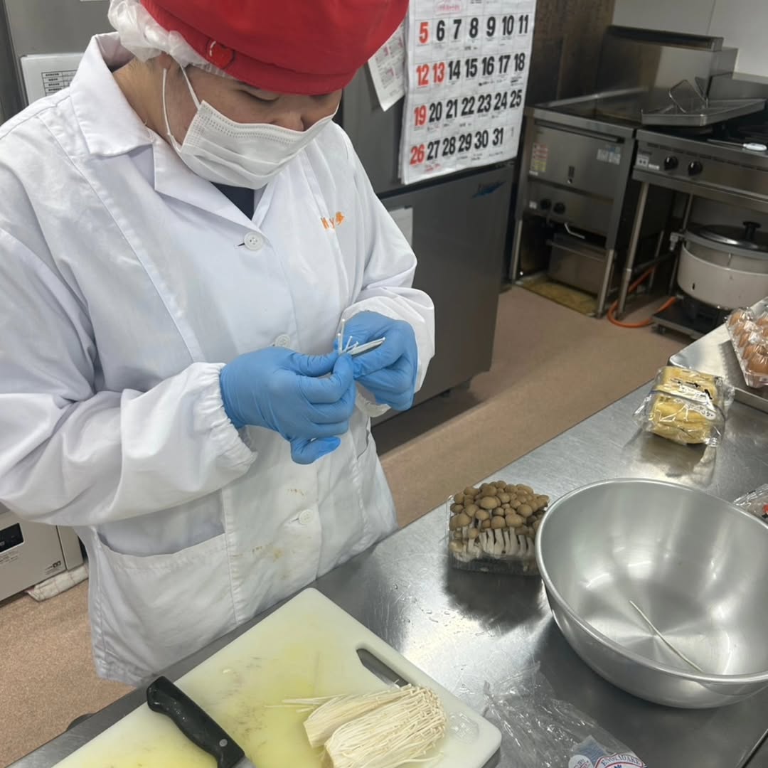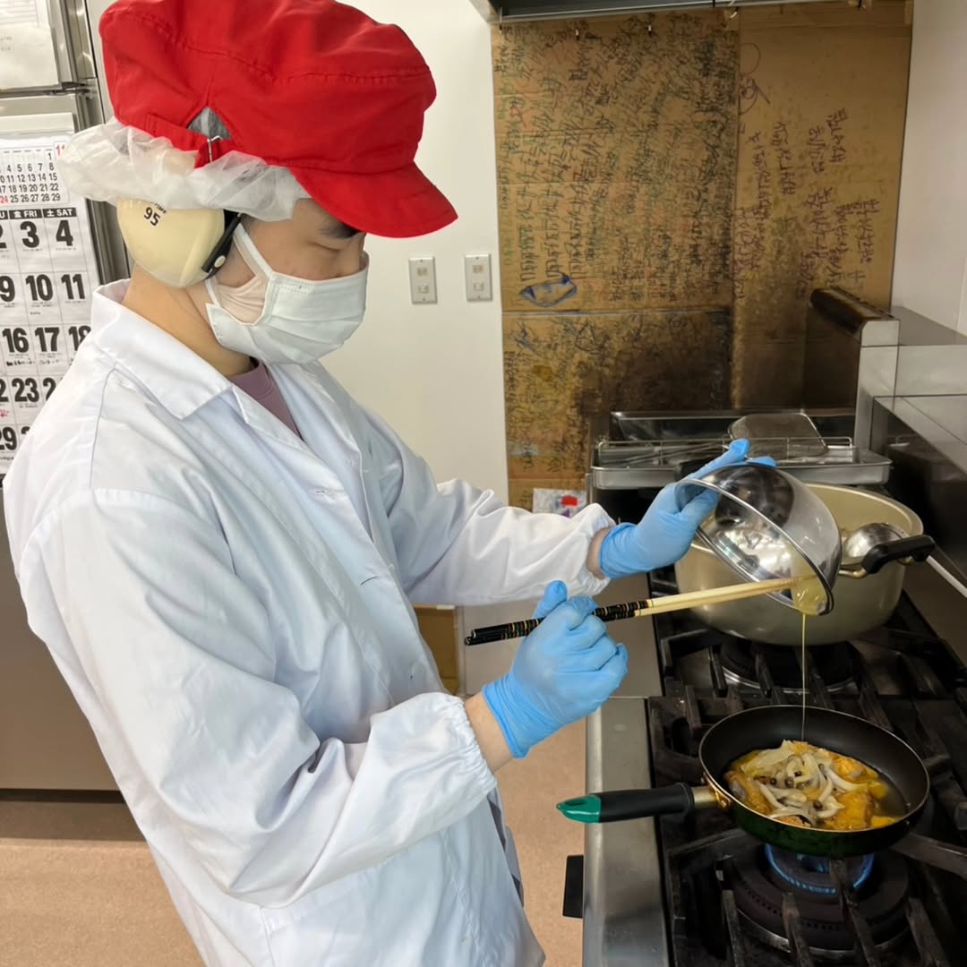 野菜を切る担当、トンカツを作る担当など、みんなで役割分担しながら調理スタート👩‍🍳